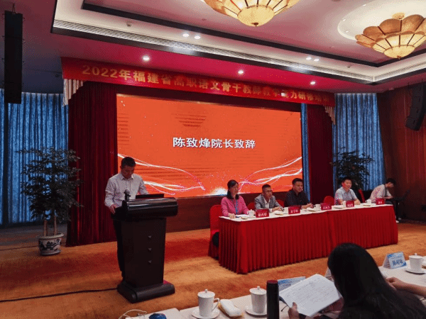 10月18日上午,由省教育厅主办,我校文化传媒与法律学院承办的2022年度福建省高职语文骨干教师教学能力研修班正式开班。继续教育学院书记高诚杰、文化传媒与法律学院院长陈致烽等出席开班仪式。