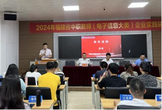 2024年7月22日,由我校电子与机械工程学院承办的2024年福建省中职教师(电子信息大类)企业实践研修班在石竹山校区顺利开班。来自我省32所中职学校的36名骨干教师参加了开班式。