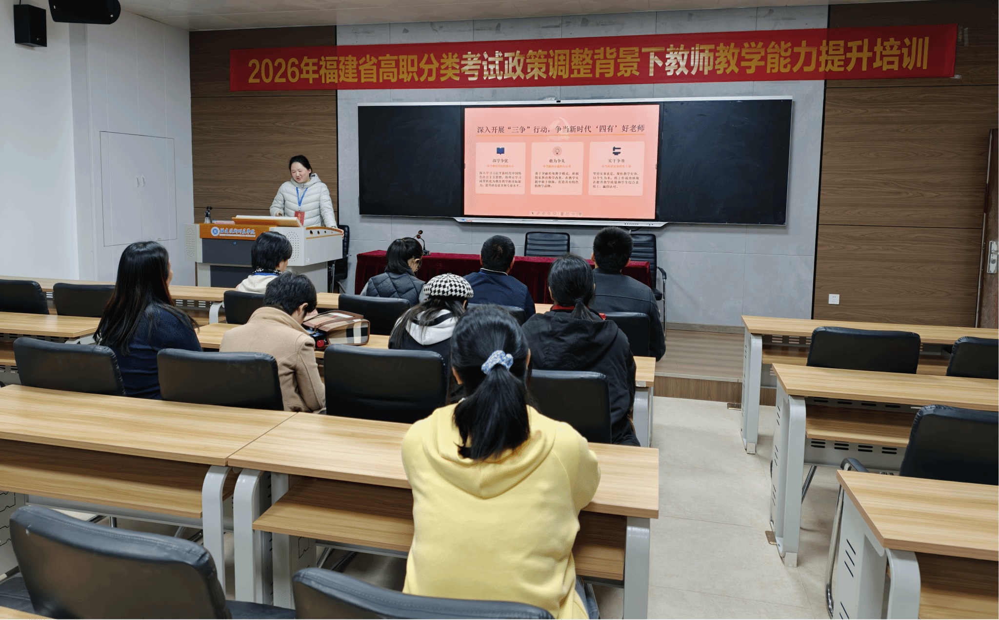 3月20日,2026年福建省高职分类考试政策调整背景下教师教学能力提升培训班(第二期)在福建技术师范学院石竹山校区正式开班,来自全省中职学校的英语、经济与管理基础教师齐聚一堂,开展为期3天的集中学习。本次培训为学考系列培训,首期已于上周圆满完成,接下来将陆续开展机械基础、教育基础等12个培训班,为我省一线教师学习新政策、适应新变化精准赋能。