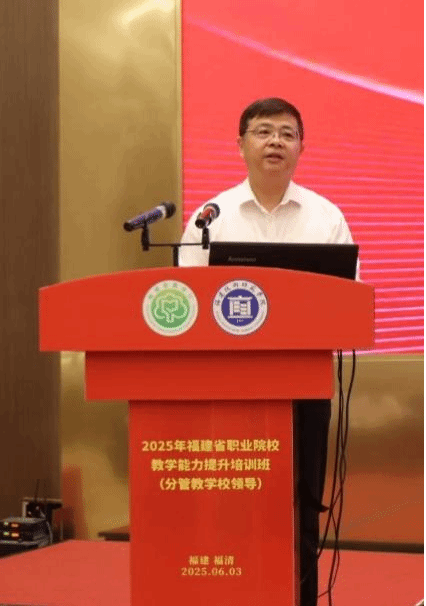 6月3日上午,由我校承办的2025年福建省职业院校教学能力提升培训班(分管教学校领导)在福清顺利开班。姜兴山副校长出席开班式并致辞,省教育厅职业教育与成人教育处林素川处长做全省职业教育工作部署。我校食品与生物工程学院、继续教育学院等领导,全省高职分管教学校领导和中职校长,以及全体工作人员参加了开班式。