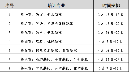 注:1.每一期培训时间为三天(第一天报到,最后一天返程合计1天)。