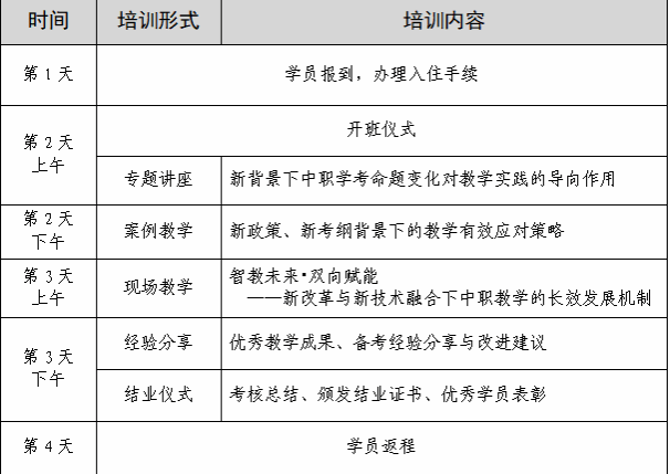 注:1.培训时间:上午8:30-11:30,下午14:30-17:30;